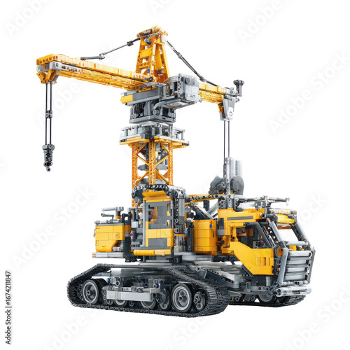 crane, vehicle, construction, yellow, grey, mechanical, engineering, machinery, heavy, powerful, modern, technology, transport, lifting, industrial, detailed, model, design, kit, part, assembled, machine, transporting, moving, large, complex, equipment, robust, realistic, three-dimensional, rendering, isolated