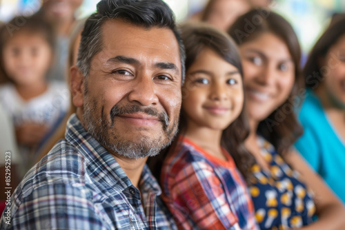 a Latino family attending a school orientation