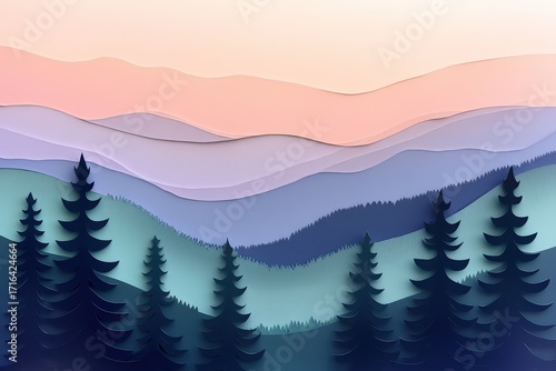 landscape, mountain, tree, pastel, colours, paper, layered, illustration, silhouette, design, nature, colours, graphic, art, background, visual, simple, modern, minimalist, abstract, forest, pine, evergreen, shaded, smooth, quiet, beautiful, colourful, bright, creative, elegant, stylish, professional, decorative, vibrant, stunning, amazing, marvellously, fantastic, gorgeous, lovely, charming, attractive, impressive, spectacular