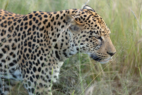 leopard, male, big five, camouflage, camouflaged, cat, muscular, predator, rosette, hunting, stalking, closeup, portrait, green, yellow, savanna, wild, wilderness, africa, angola, botswana, etosha, kruger, namibia, national park, south africa, southern africa, victoria falls, zambia, rhodesia, safari