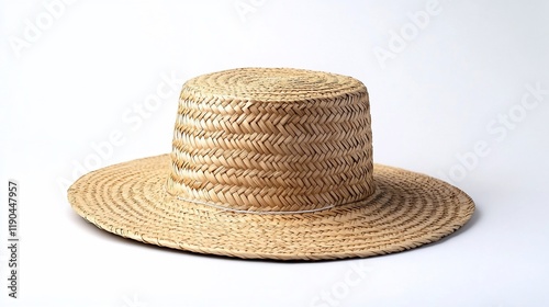 hat, straw, boater, summer, fashion, accessory, headwear, sun, protection, style, woven, textile, craft, hand-made, vintage, retro, rustic, design, casual attire, elegant, travel, holiday, beach, nature, agriculture, farming, rural, countryside, sunhat, rimmed, head, clothing, apparel, object, item, texture, material, light, background, white, isolated, simple, classic