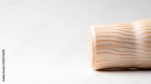 A light beige tumbler with wood grain detailing rests on a white surface. Its cylindrical shape is subtly curved. The image is clean and simple, with soft lighting. It has a minimalist aesthetic. Th