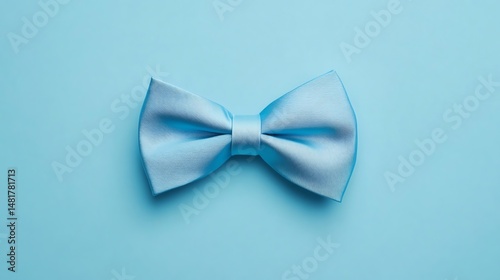 A light blue background displays a single, elegant bow tie.