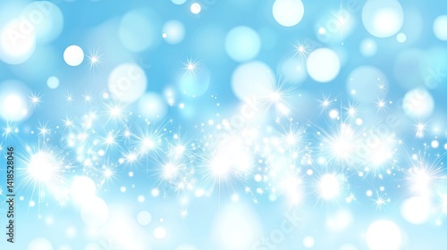 A light blue background with shimmering sparks and bokeh circles.