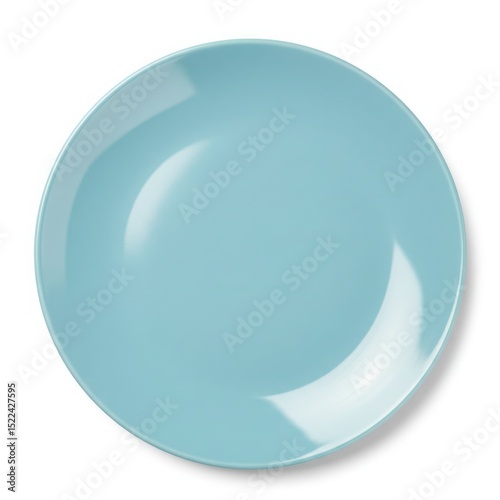 A light blue ceramic plate centered on a white background in a studio shot