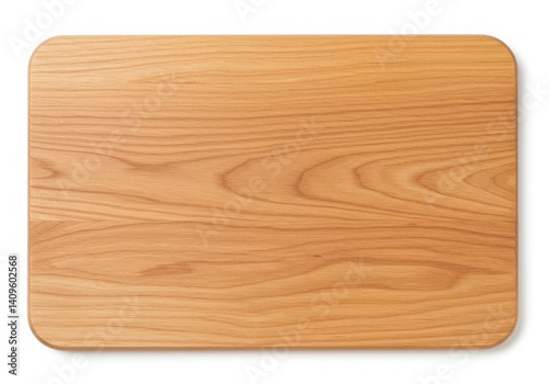 A light brown wooden cutting board with rounded corners on a white background in a studio shot
