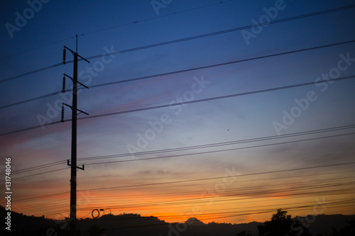 a light pole view of sunrise over the hill at Tak province, Thailand