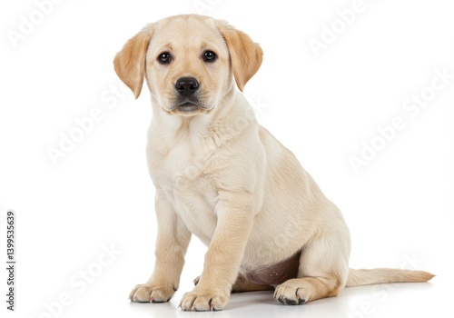 labrador, puppy, dog, animal, cute, pet, mammal, young, domestic, canino, breed, portrait, studio, white, background, sitting, adorable, purebred, eye, ear, fur, tail, paw, light, yellow