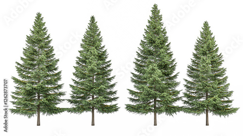 a line of green pine trees on a transparent background, PNG image, PNG file, Generative art.