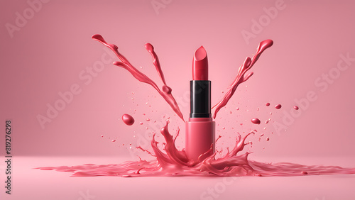 a lipstick with pink liquid splashing on it for beauty makeup concept