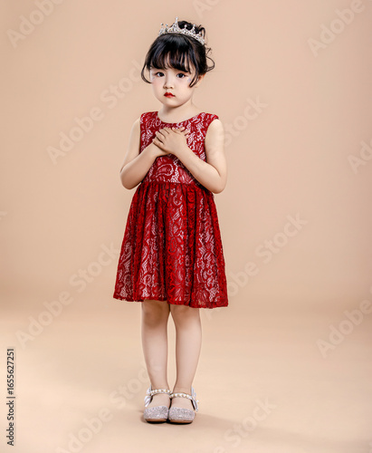 A little Asian girl in a red dress
