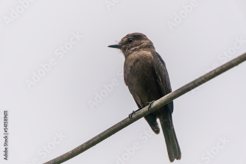 A little brown bird standing on a wire (Common nightingale)
