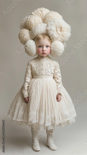 little, girl, wearing, white, dress, fluffy, hat, cute, children, small, caucasian, 1, person, baby, portrait, childhood, fashion, beauty, girl, smiling, cheerful, innocence, looking, clothing, studio, shot, happiness, fun, joy, toddler, camera, sitting, lifestyle, blond, hair, cap, costume, toy, traditional, family, elegance, human, face, humor, woman, princess, indoor, full