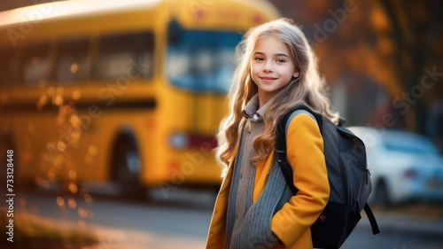 backpack, children, education, school, cognition, student, bus, girl, boarding school, school bus, schoolgirl, start, return to school, yellow, outside, cute, childhood, study, transport, transportation, elementary school, going, day, bus stop, small, incoming, caucasian, bag, people, public school, first, lifestyle, schoolboy, walk, street, autumn, girl, travel, adolescence, campus, smile, smiling, jacket