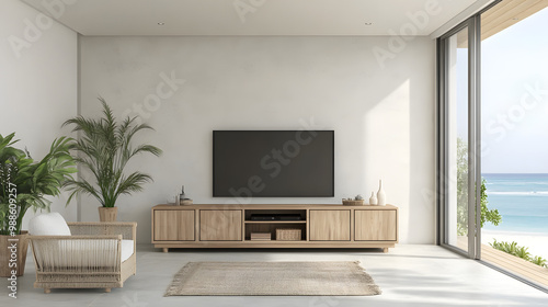 living, room, large, flat, screen, television, window, white, design, home, ocean, modern, couch, house, furniture, wall, interior, plant, floor, contemporary, decor, indoor, wood, light, background, style, space, table, blank, cabinet, apartment, architecture, television, shelf, elegant, lifestyle, lounge, concept, empty, set, mock, smart, up, led, sofa, relax, chair