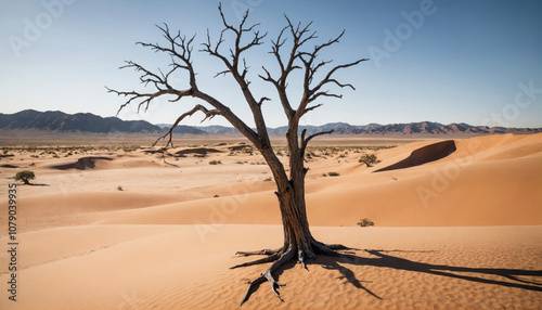 dead tree, dune, desert, arid, landscape, dry, sand, mountain, branch, trunk, shadow, nature, environment, barren, lifeless, hot, sun, blue skies, lonely, africa, namibia, travel, scenery, wildlife, outdoors, wilderness, geology, earth, natural, beauty, wanderlust, adventure, exploration, earth-tone, climate change, drought, survival, resilience, desolate, remote, huge, expanse, endless, horizon, distance, perspective, contrast
