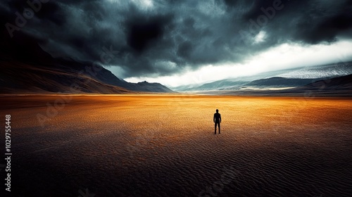 solitude, landscape, nature, sky, cloud, mountain, horizon, desert, dramatic, light, shadow, exploration, adventure, serenity, isolation, wilderness, scenery, atmosphere, calm, immensity, freedom, journey, terrain, beauty, silence, contrast, depth, colours, stillness, expansion, perspective, life events, escape, simplicity, calmness, environment, outdoors, space, mystery