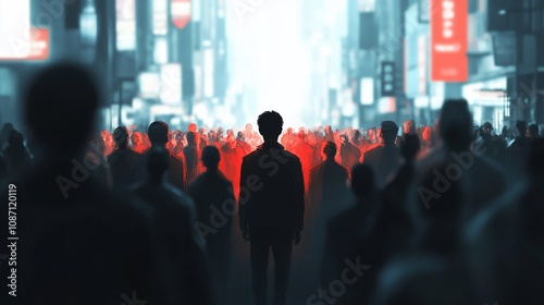crowd, silhouette, person, people, city, urban, street, night, dark, light, alone, standing, walking, anonymous, crowd of people, individual, city landscape, street scene, anonymity, individuality