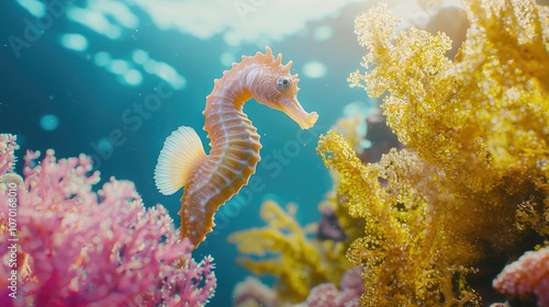 seahorse, coral, reef, ocean, underwater, marine life, fish, animal, nature, tropical, aquatic, colourful, vibrant, beautiful, wildlife, fauna, sea, sunlight, coral reef, ocean life, environment, marine animal, water, biology, ecosystem, conservation, ecology, tropical fish, seahorse, underwater photography, aqualung, diving, oceanography, ocean life, océano