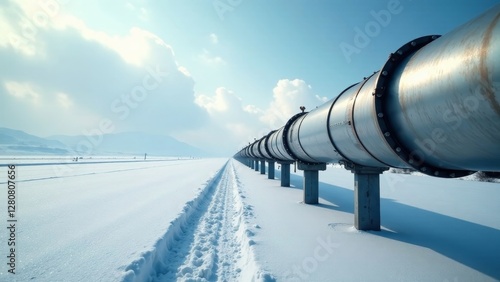 pipeline, steel, winter, snow, landscape, energy, transportation, infrastructure, industry, utility, cold, frigid, glacé, arctic, power, resource, delivery, system, transport, conveyance, conduit, grooved, supply