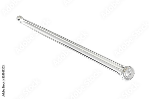 A long, thin, clear object with a rounded end. It is not clear what the object is, but it is a tool or a piece of art. The object is placed on a white background