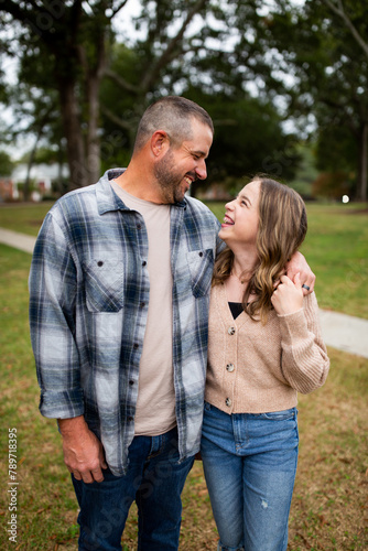 affection, beautiful, candid, casual attire, clothing, cute, father, daughter, face, fall, family, father, girl, happiness, happy, joy, laughing, laughter, lifestyle, long sleeve, love, natural, outdoors, outside, smile, smiling, teenage, together, togetherness, tree, young