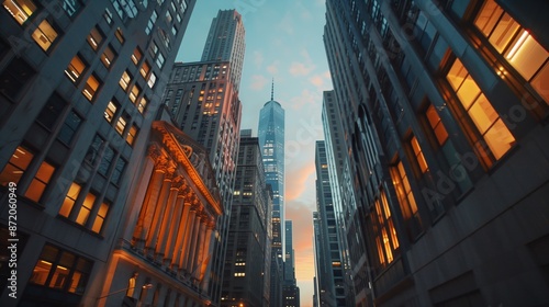 ai, technology, skyscraper, city, downtown, street, dusk, sunset, evening, architecture, building, urban, city landscape, skyline, glasses, window, light, shadow, concrete, tower, high, rise, facades, level, perspective, low, angle, view, horizon, cloud, sky, colours, gold, hours, metropolis, life, landscape, modern, financial, district, business, light, jungle, scene, night, contemporary, city landscape