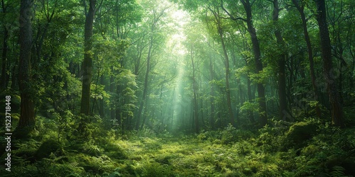 A lush forest with clear, unpolluted air, symbolizing the Earth’s lungs. A vibrant green landscape with trees and clean air.