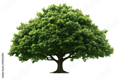 A lush green tree with a broad canopy, symbolizing nature and tranquility, perfect for environmental themes and landscape designs.