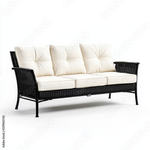 A luxurious four-seater outdoor wicker sofa with off-white cushions offers comfortable relaxation and stylish design for modern patio spaces perfect for entertaining guests or