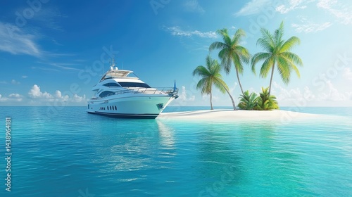 A luxurious yacht navigates the crystal-clear waters near a secluded tropical island. showcasing vibrant greenery and a serene beach in the background. ideal for travel promotions