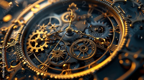A macro view of intricate golden watch gears and mechanisms reveals the complexity and artistry behind luxury timepieces. Perfect for highlighting precision, craftsmanship, and mechanical beauty.