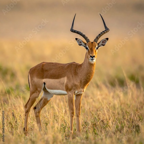 antelope, wildlife, nature, savanna, horn, graceful, mammal, animal, grass, field, sunlit, portrait, calm, serene, majestic, african, wild, elegant, watching, vigilant, gold, beautiful, closeup, outdoors, day, looking, strong, attentive, upright, focused