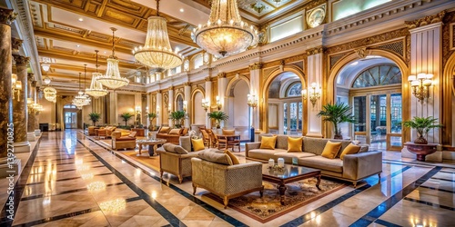 A Majestic Grand Lobby Experience Exquisite Marble Sparkling Chandeliers and High Ceilings Define This Luxurious Hotel