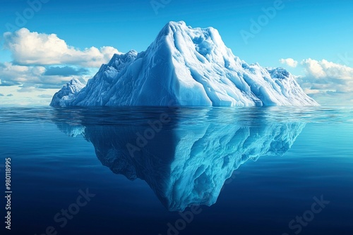 iceberg, ice, ocean, water, blue, sky, cloud, glacé, cold, white, nature, arctic, antarctica, landscape, seascape, glacial, massive, majestic, huge, calm, serenity, tranquil, pristine, clear, environment, natural, beautiful, wonder, climate, change, global, warming, sea, horizon, surface, depth, underwater, deep, immensity, solitude, peace
