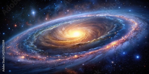 A majestic spiral galaxy unfurls its sweeping arms like a canvas of stars and dust, illuminated by the distant glow of a newborn supernova , star formation, interstellar medium