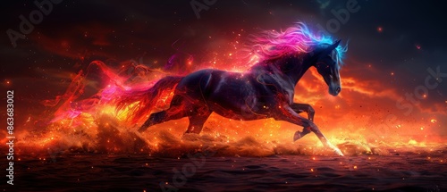 horse, vector, rearing, majestic, gradient, mane, digital artwork, illustration, artwork, fantasy, animal, equine, fast horse, powerful, dynamic, movement, motion, energy, abstract, colourful, vibrant, mythical, creature, symbol, freedom, spirit, wild, design, commercial, artistic, creative, graphic design, three-dimensional, render, clip art, download, royalty free, image