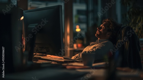 man, computer, office, screen, deadline, fatigue, sleepy, sleepy, exhausted, overworked, burnout, employee, men at work, business, corporate, technology, office space, resting, nap, digital, asleep, drowsy, illuminated, multitask, stress, pressure, overtime, white-collar, professional, cubicle, workaholic, slumber, break, eyes closed