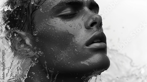 a man in a face is in the water, with a spray