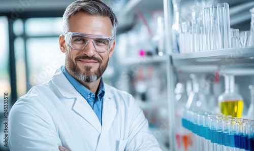man, laboratory, coat, smiling, posing, wearing, safety, scientist, chemist, laboratory, experiment, goggles, chemical, various, science, beaker, including, equipment, test, tube, chemistry, medicals, doctor, medicine, research, biology, scientific, health, professional, person, sample, male, technology, expertise, microscope, analysing, liquid, glassware, profession, technician, discovery, working, analysis, specialist, microbiology, biotechnology, flask, pharmacy, student