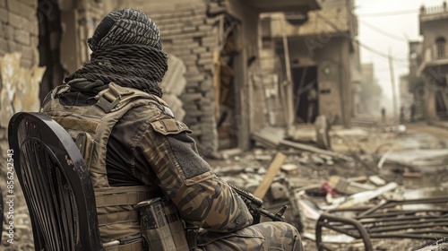 a man in a military uniform is walking through a city