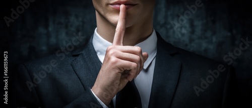 silence, secret, quiet, hush, mystery, mysterious, lip, authority, formal, leadership, mature, executive, confidential, hidden, private, secrecy, privacy, corporate, suit, security, message, serious, subtile, professional, whisper, shadow, stillness, intention, warning, finger, gesture, communication, attention, signal, alert, man, caution, sharpened, business, control, adult, calm, dark, reserved, discretion, secretive, nonverbal