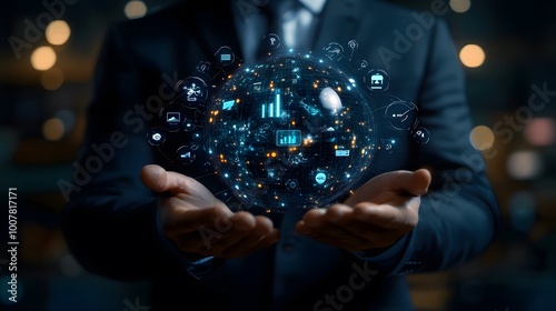man, holding, ball, many, symbol, blurry, background, technology, business, concept, innovation, networking, digital, connect, modern, communication, information, computer, hand, global, businessman, cyberspace, web, cyberspace, media, icon, tech, people, control, abstract, blue, system, touch, interface, online, display, datum, screen, security, earth, solution, virtual, software, future, strategy, success, office, futuristic, hologram