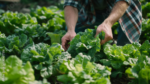 lettuce, garden, man, organic, fresh, agricultural, vegetable, plant, green, farming, wearing, plaid, shirt, food, nature, healthy, growth, harvest, salad, leaf, summer, cultivate, farmer, grow, vegetarian, field, diet, crop, produce, greenhouse, nourishment, background, raw, hand, outdoors, health, environment, spring, row, closeup, plantation, freshness, dirtied, dirt, picking, business, work
