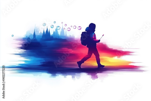 man, walking, city, backpack, mobile phone, phone, hand, whimsical, sky, bubble, giving, atmosphere, playful, illustration, watercolor, background, person, silhouette, black, art, abstract, vector, grunge, travel, texture, evening, street, adventure, landscape, light, paint, young, nature, ink, white, entertainment, night, sound, urban, artistic, player, splash, sport, pop, concept, music, party, show, rock