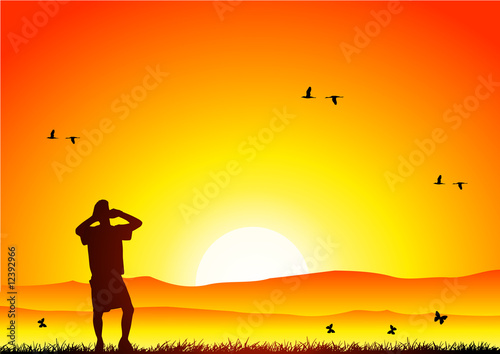A man relaxing at sunset