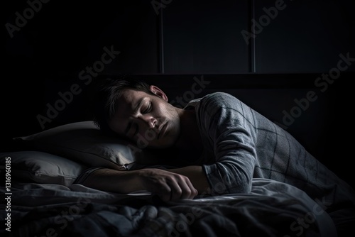 man, sleeping, dark, room, bed, pillow, bedchamber, relaxation, rest, serenity, calmness, calmness, peaceful, slumber, dream, restful, silence, solitude