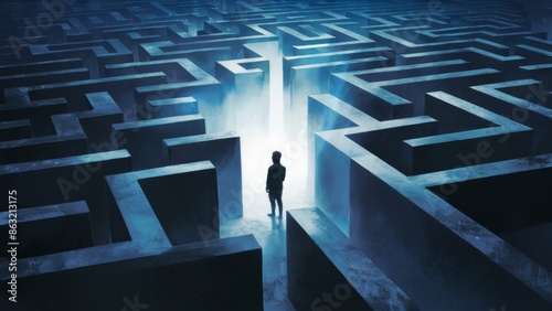 man, standing, labyrinth, light, shining, confusion, businessman, man, decision, success, solution, problem, direction, blue, idea, lost, puzzle, discovery, suit, searching, strategy, concept, mystery, business, shadow, conquering, adversity, complexity, creativity, outline, entrance, uncertainty, progress, 1, person, walking, abstract, futuristic, computer, graphic, dark, opportunity, intelligence, looking, up, choice, frustration, illustration