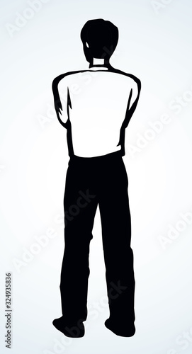 A man stands and looks into the distance. The view from the back. Vector drawing