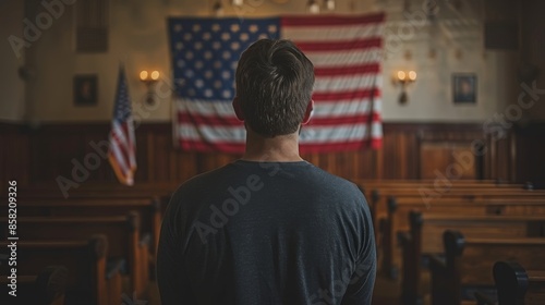 man, standing, american flag, historic, room, patriotism, flag, heritage, contemplation, respect, profound, significance, history, indoor, national, alone, reflective, country, solemn, traditional, patriotic, historic building, wooden, furniture, courtroom, quiet, honour, interior, symbolic, seated, thoughtful, nation, flag pole, us, pride, respectful